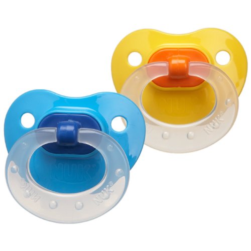 - The original NUK Orthodontic Pacifier is a #1 best seller. The orthodontic nipples are made of soft silicone and the shields come in fashionable colors. Features Encourages healthy oral development while satisfying natural sucking desire. Designed to be similar in shape to a mother's nipple during breastfeeding. NUK Air System allows baglet to conform to baby's mouth. Size 2: From about 7 months 2 Pack
