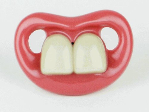 Two Front Teeth PacifierFrom the maker of the Billy-Bob teeth, comes a pacifier with a new twist. You are sure to get a few double takes whenever this fun little piece is in use. Contoured shield with ventilation holes Contains Silicone Orthodontic Nipple Kid tested, Dentist approved complies with EEC directive 90/128/EEC complies with 16 CFR 1511 requirements for pacifiers These pacifiers are sized for ages 3 months to 99 years :) so you can get one for baby and one for yourself. Sure to be the talk of the next baby shower. Try one for Halloween or just have a little fun at church or the grocery storeCheap "Billy Bob Two Front Teeth Baby Pacifier, Pink Lips" Discount Review Shop